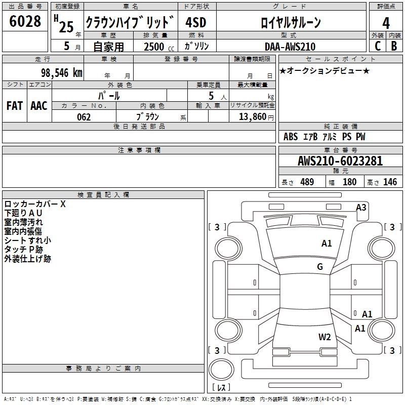 TOYOTA CROWN HYBRID 2013 г., лот № 6028