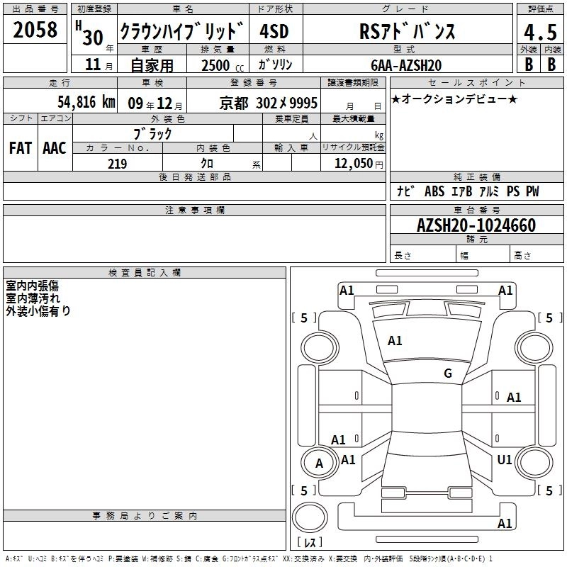 TOYOTA CROWN HYBRID 2018 г., лот № 2058