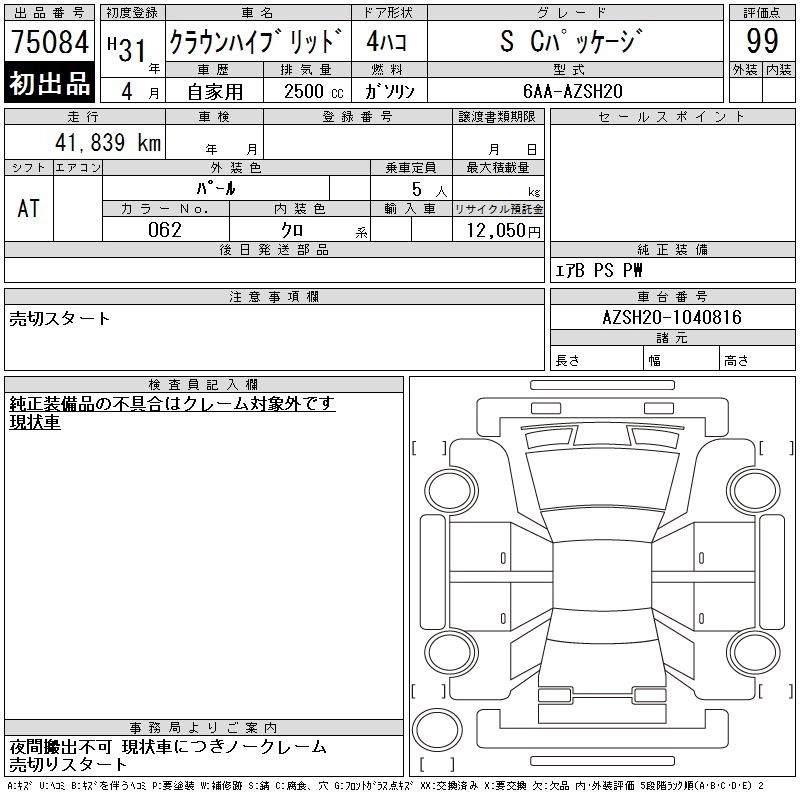 Статус выставлен на аукцион Лот 75084 Аукцион CAA Chubu Дата аукциона 11.03.2026