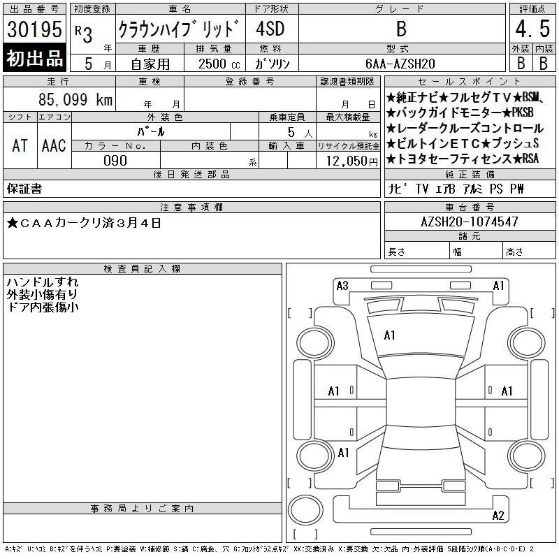 Статус выставлен на аукцион Лот 30195 Аукцион CAA Chubu Дата аукциона 11.03.2026