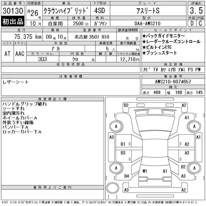 Статус выставлен на аукцион Лот 30130 Аукцион CAA Chubu Дата аукциона 11.03.2026