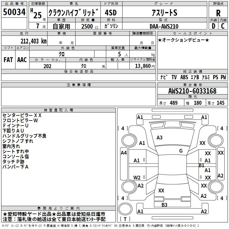 TOYOTA CROWN HYBRID 2013 г., лот № 50034