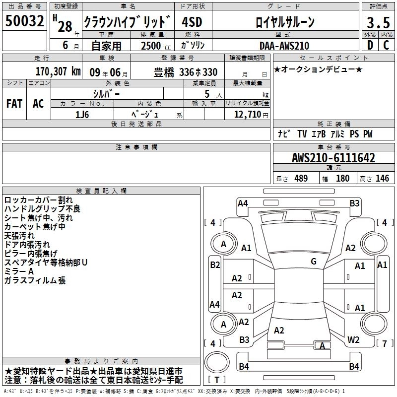 Статус выставлен на аукцион Лот 50032 Аукцион TAA Chubu Дата аукциона 12.03.2026