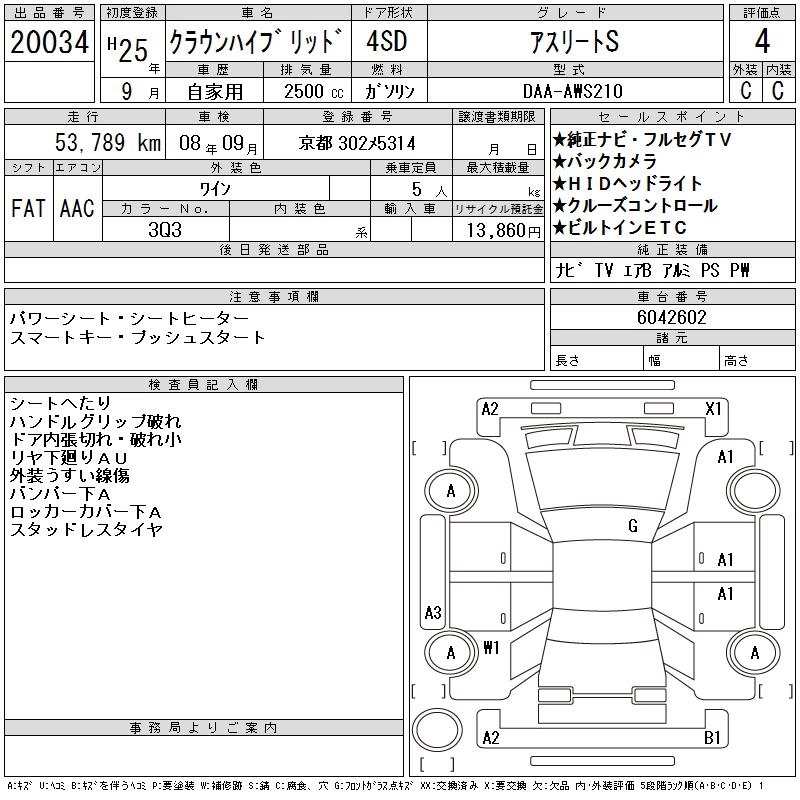 TOYOTA CROWN HYBRID 2013 г., лот № 20034