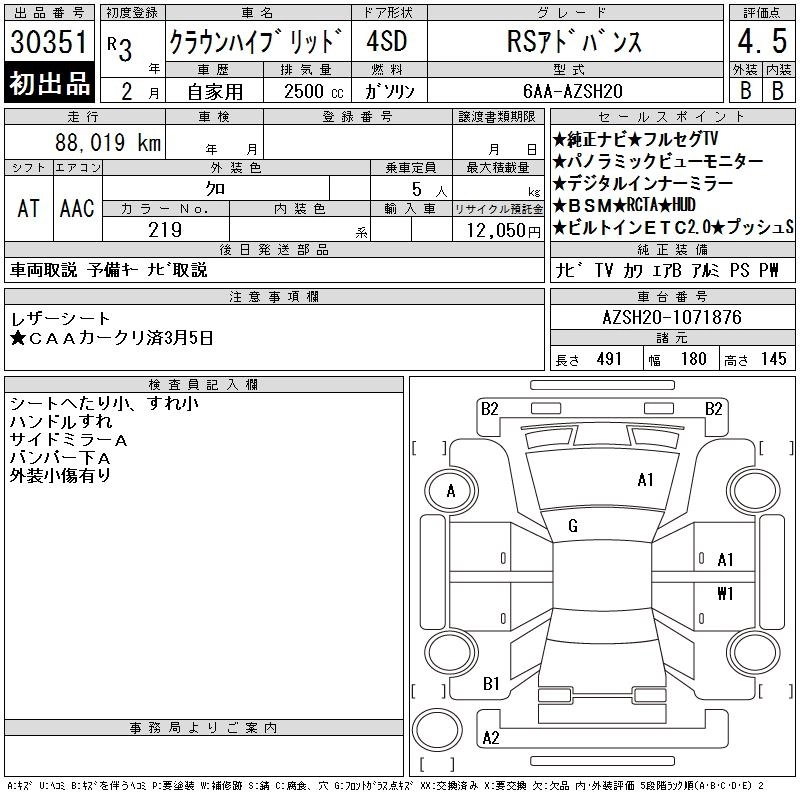 Статус выставлен на аукцион Лот 30351 Аукцион CAA Chubu Дата аукциона 11.03.2026