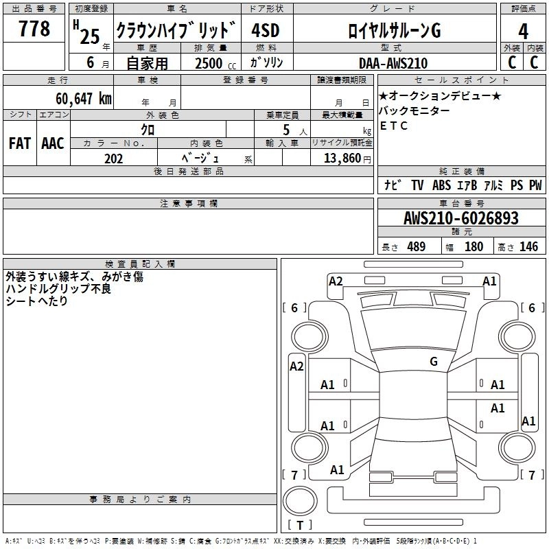 TOYOTA CROWN HYBRID 2013 г., лот № 778