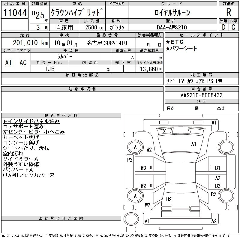 TOYOTA CROWN HYBRID 2013 г., лот № 11044