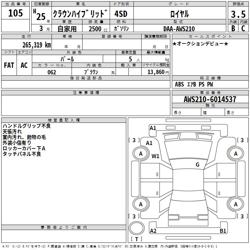 TOYOTA CROWN HYBRID 2013 г., лот № 105