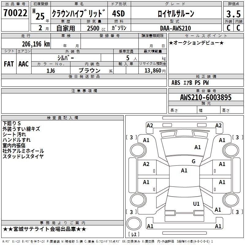 TOYOTA CROWN HYBRID 2013 г., лот № 70022