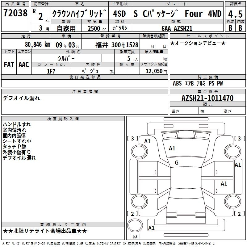 Статус выставлен на аукцион Лот 72038 Аукцион TAA Chubu Дата аукциона 19.03.2026