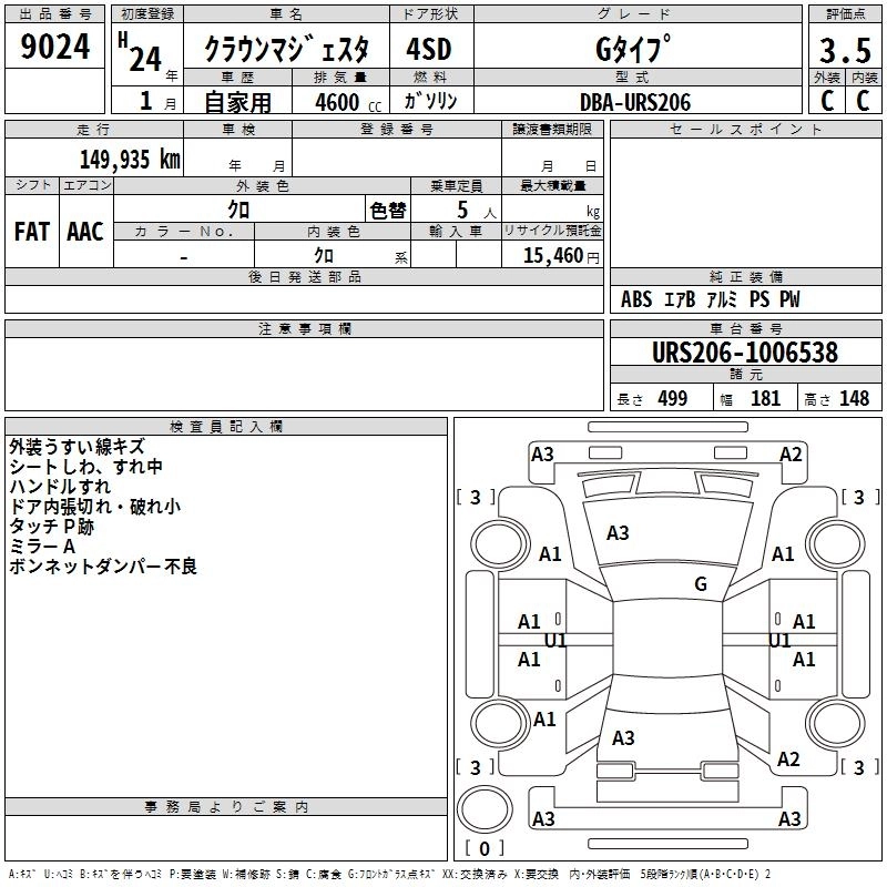 TOYOTA CROWN MAJESTA 2012 г., лот № 9024