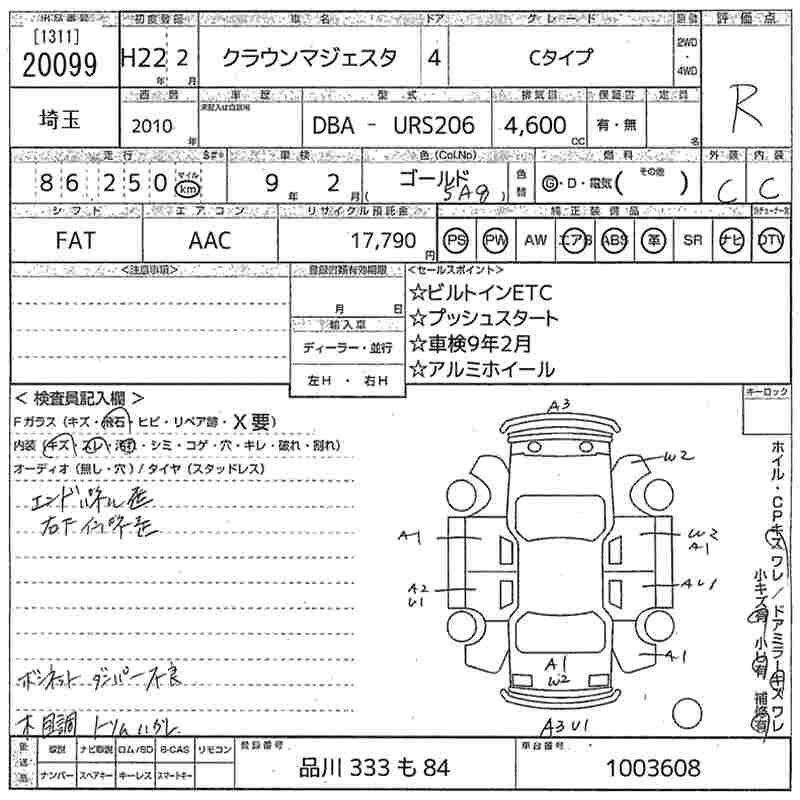TOYOTA CROWN MAJESTA 2010 г., лот № 20099