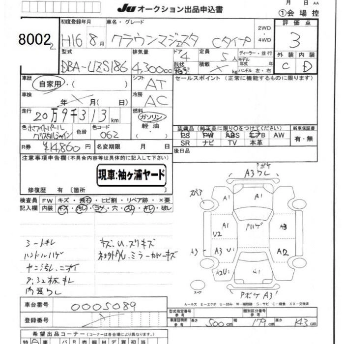 TOYOTA CROWN MAJESTA 2004 г., лот № 8002