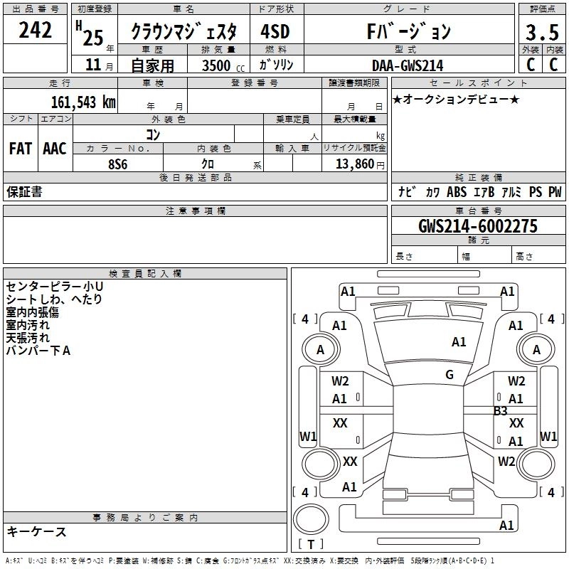 TOYOTA CROWN MAJESTA 2013 г., лот № 242