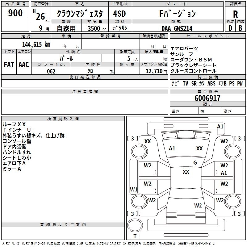 TOYOTA CROWN MAJESTA 2014 г., лот № 900