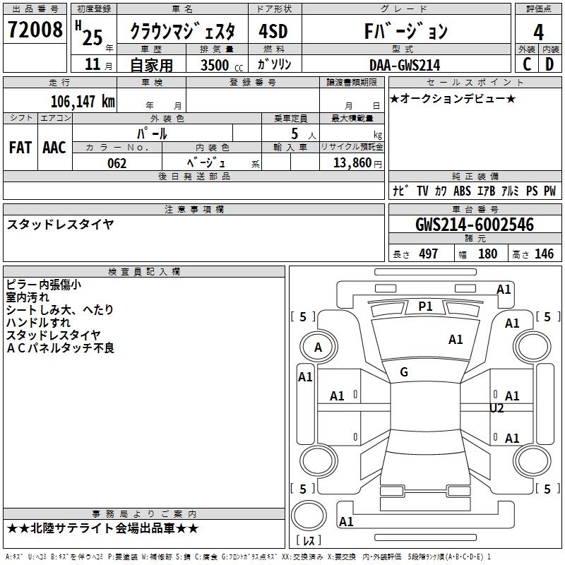Статус выставлен на аукцион Лот 72008 Аукцион TAA Chubu Дата аукциона 19.03.2026