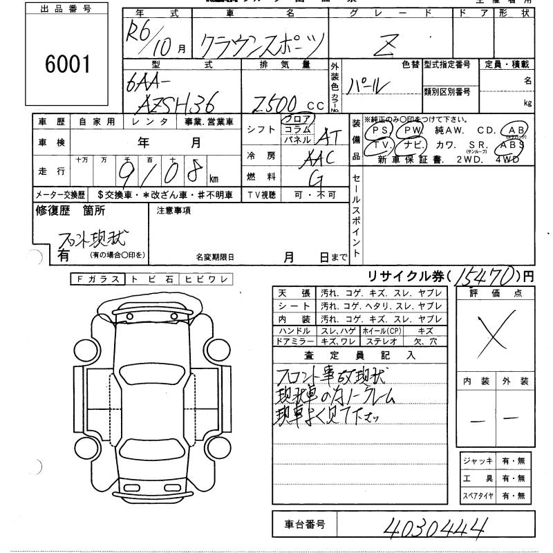 TOYOTA CROWN SPORT 2024 г., лот № 6001