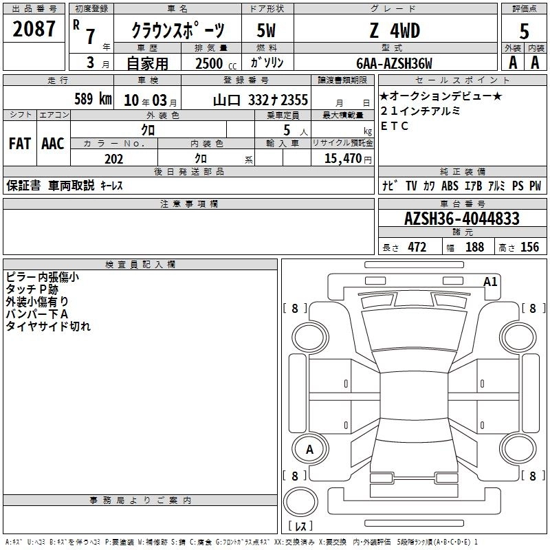 Статус выставлен на аукцион Лот 2087 Аукцион TAA Hiroshima Дата аукциона 27.01.2026