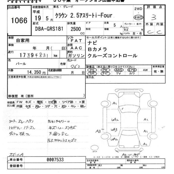 TOYOTA CROWN 2007 г., лот № 1066
