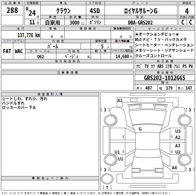 Год выпуска2012 Пробег 138 000 км КузовGRS202 Комплектация ROYAL SALOON G