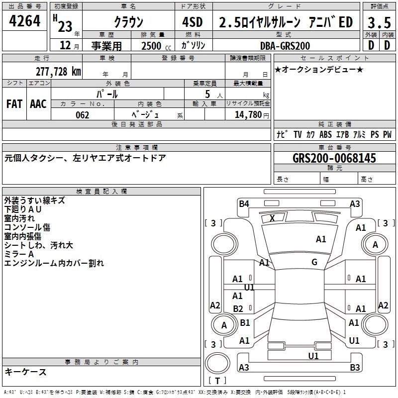 TOYOTA CROWN 2011 г., лот № 4264