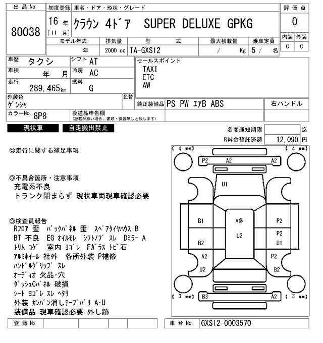 Год выпуска2004 Пробег 289 000 км КузовGXS12 КомплектацияSUPER DELUXE GPKG