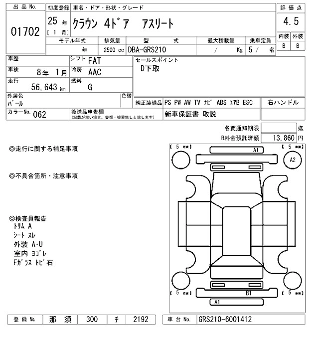 TOYOTA CROWN 2013 г., лот № 1702