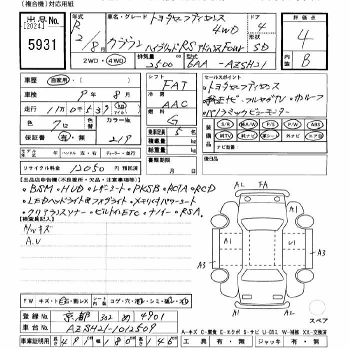 Год выпуска2020 Пробег 110 000 км КузовAZSH21 Комплектация4WD HYBRID RS ADVANCE FOUR TSS