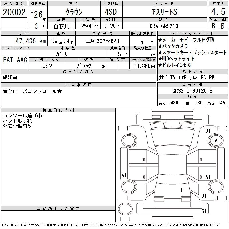 TOYOTA CROWN 2014 г., лот № 20002