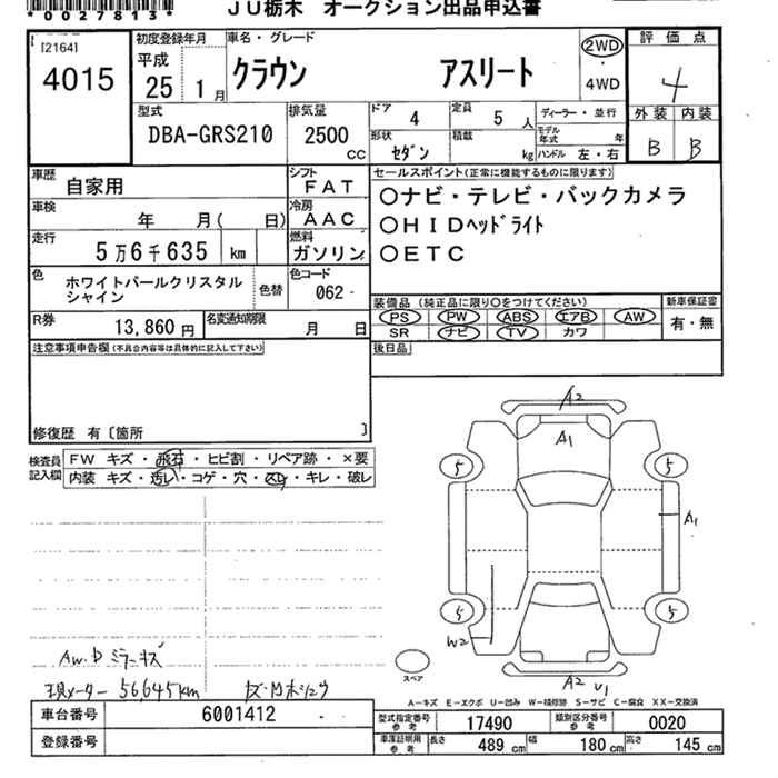TOYOTA CROWN 2013 г., лот № 4015