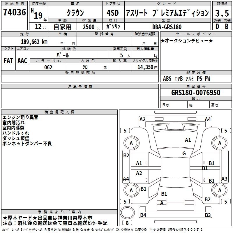 Год выпуска2007 Пробег 190 000 км КузовGRS180 Комплектация ATHLETE PREMIUM EDITION