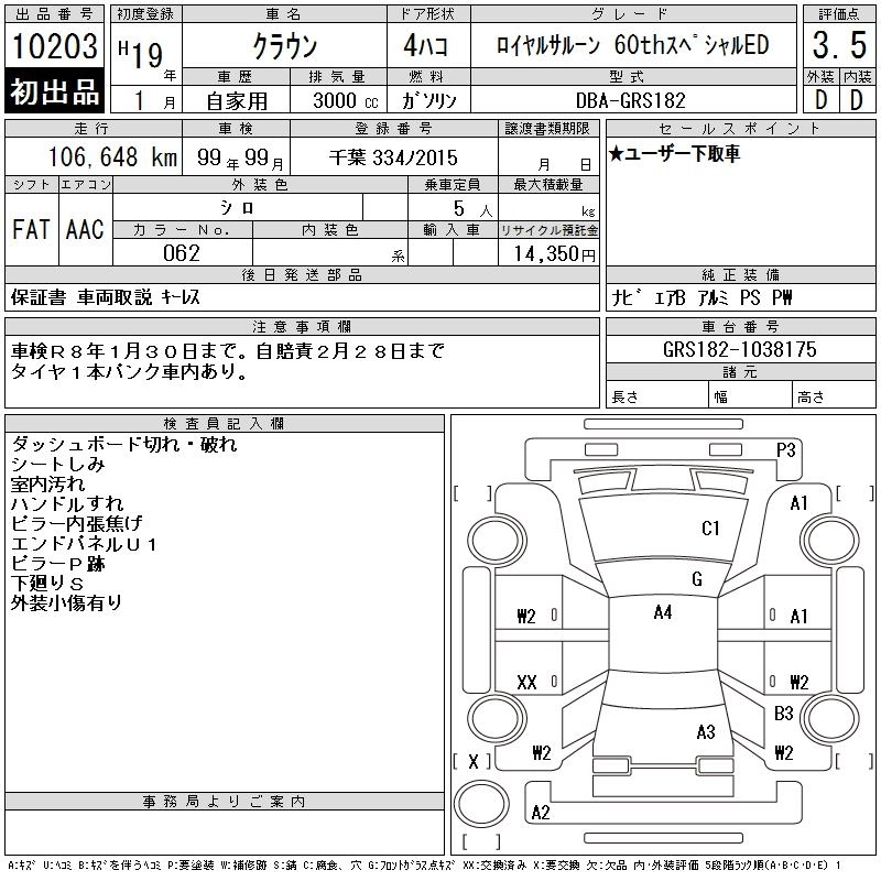 Год выпуска2007 Пробег 107 000 км КузовGRS182 Комплектация ROYAL SALOON 60TH SPECIAL ED