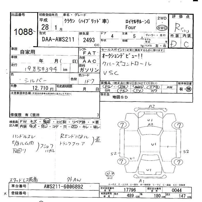 TOYOTA CROWN 2016 г., лот № 1088