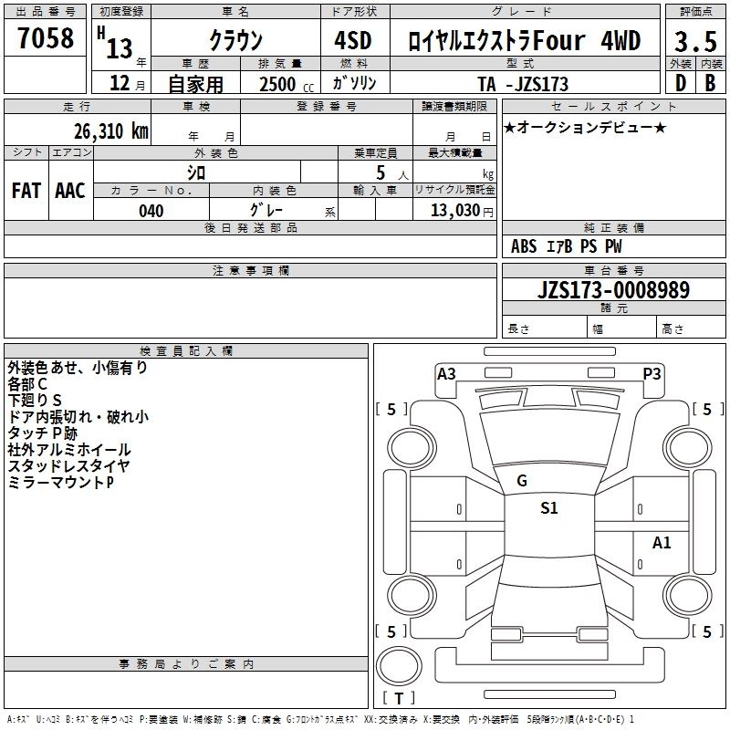 Год выпуска2001 Пробег 26 000 км КузовJZS173 Комплектация ROYAL EXTRA FOUR 4WD