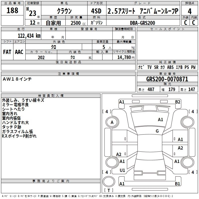 Год выпуска2011 Пробег 122 000 км КузовGRS200 Комплектация2.5 ATHLETE ANNIVER MOON ROOF P