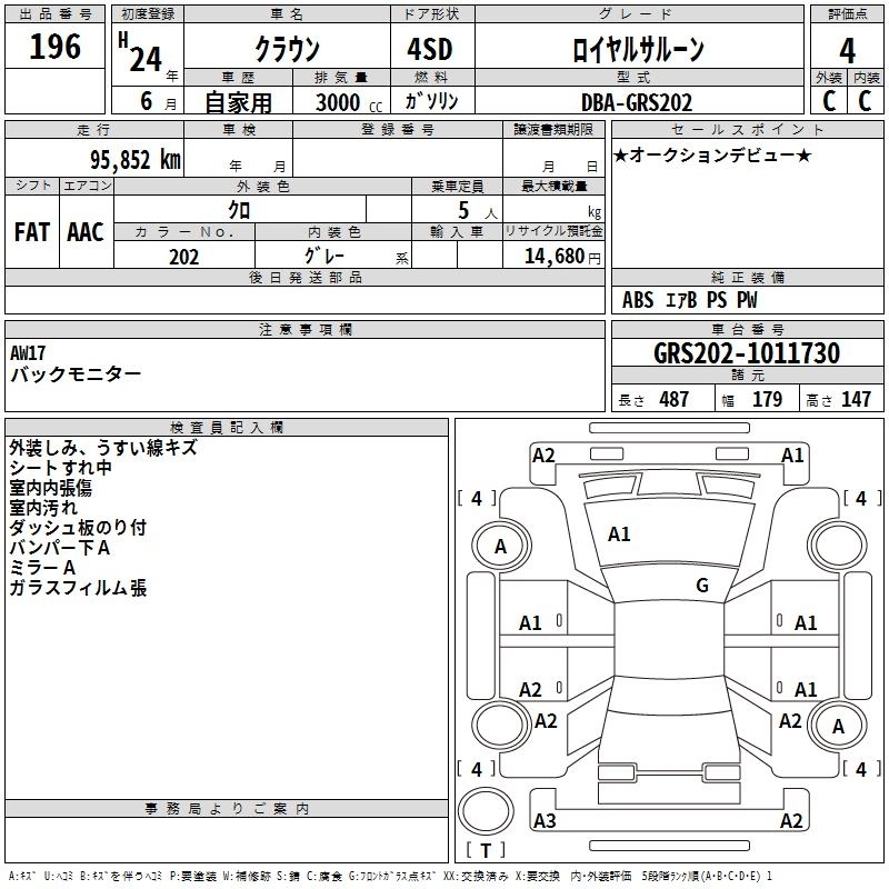 Год выпуска2012 Пробег 96 000 км КузовGRS202 Комплектация ROYAL SALOON