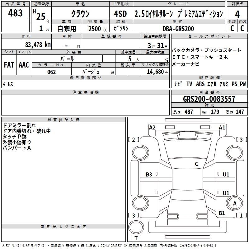 Год выпуска2013 Пробег 83 000 км КузовGRS200 Комплектация2.5 ROYAL SALOON PREMIUM MED