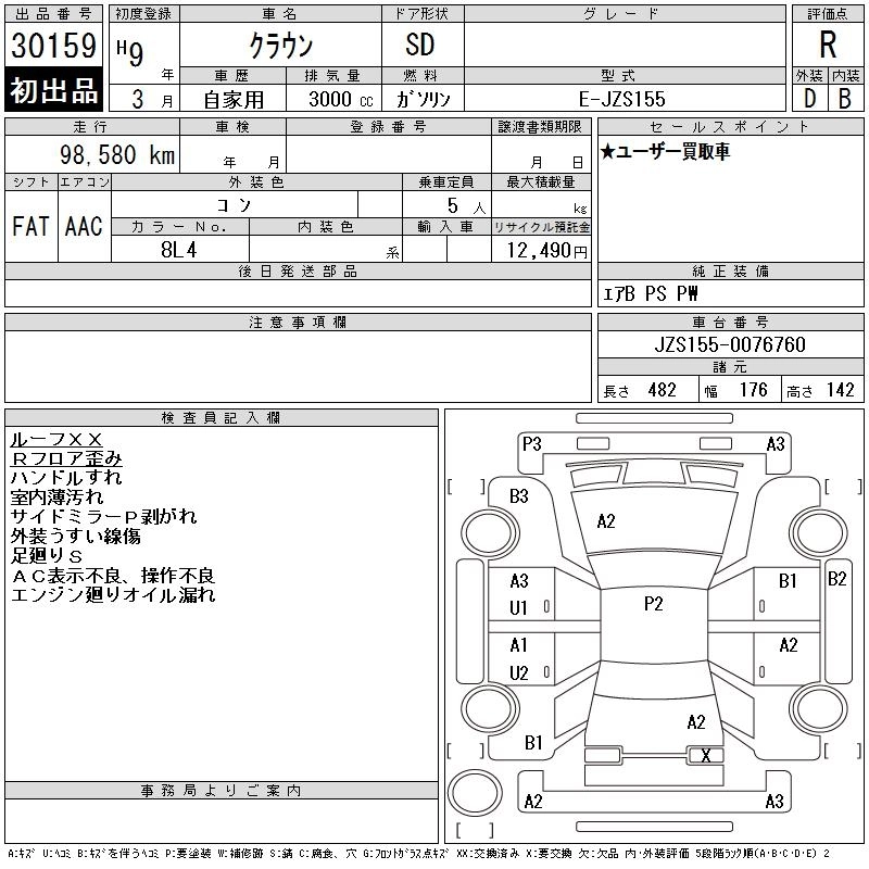 TOYOTA CROWN 1997 г., лот № 30159