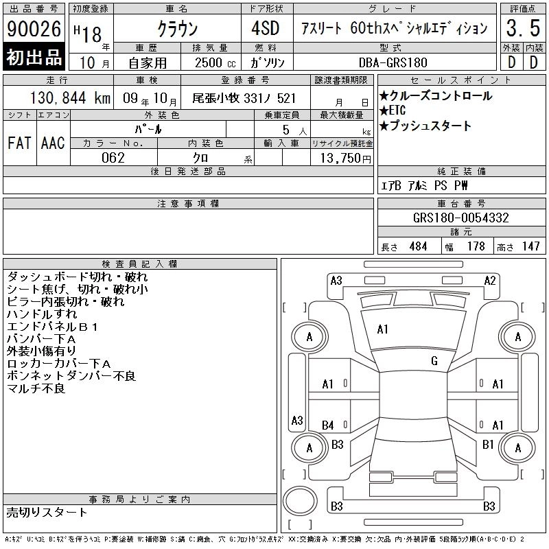 Год выпуска2006 Пробег 131 000 км КузовGRS180 Комплектация ATHLETE 60TH SPECIAL ED