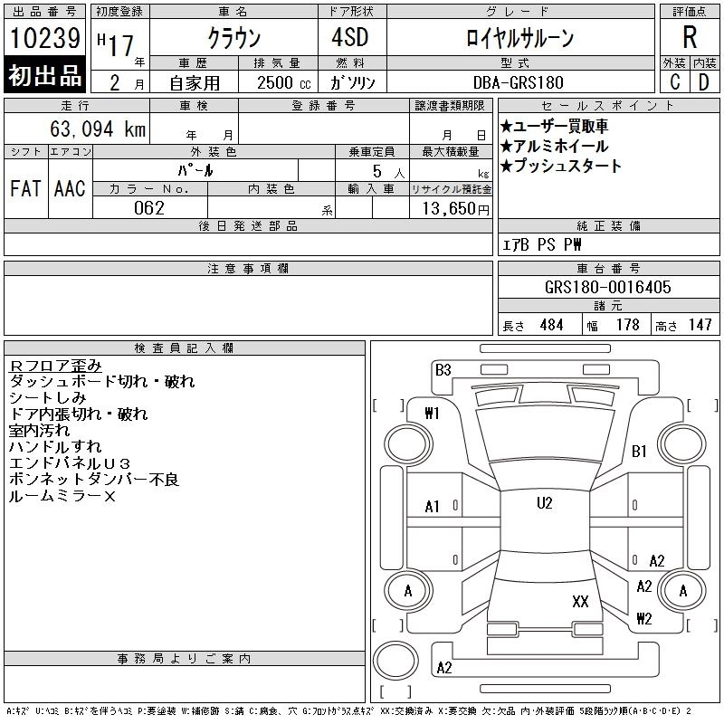 TOYOTA CROWN 2005 г., лот № 10239