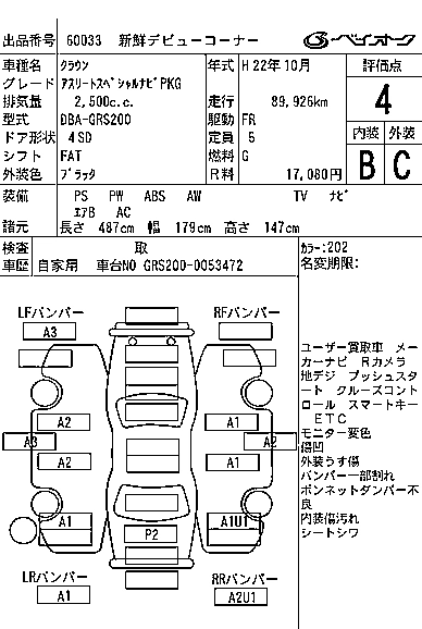 TOYOTA CROWN 2010 г., лот № 60033