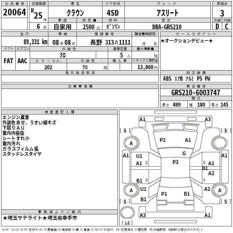 TOYOTA CROWN 2013 г., лот № 20064
