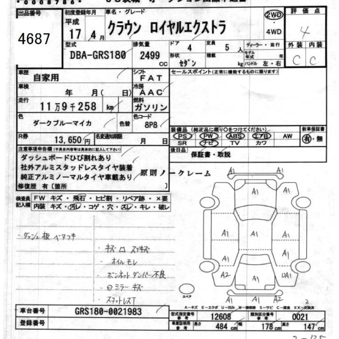 Статус выставлен на аукцион Лот 4687 Аукцион JU Ibaraki Дата аукциона 11.03.2026