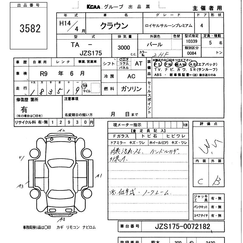 Статус выставлен на аукцион Лот 3582 Аукцион KCAA M Kyushu Дата аукциона 11.03.2026