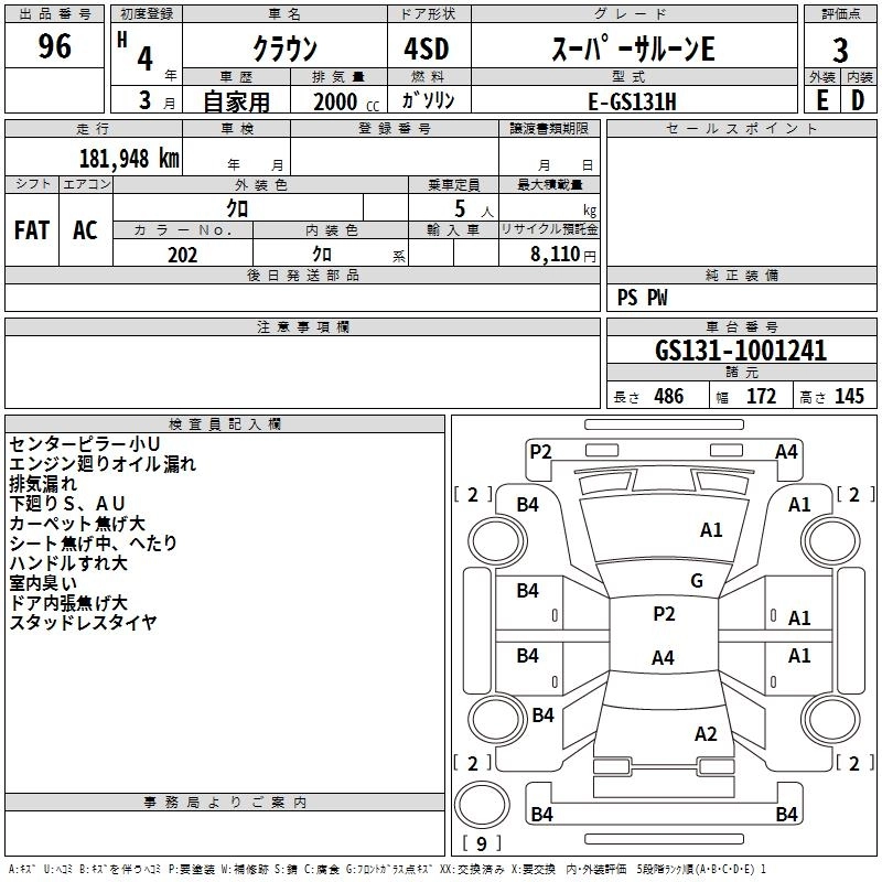 Год выпуска1992 Пробег 182 000 км КузовGS131H Комплектация SUPER SALOON E