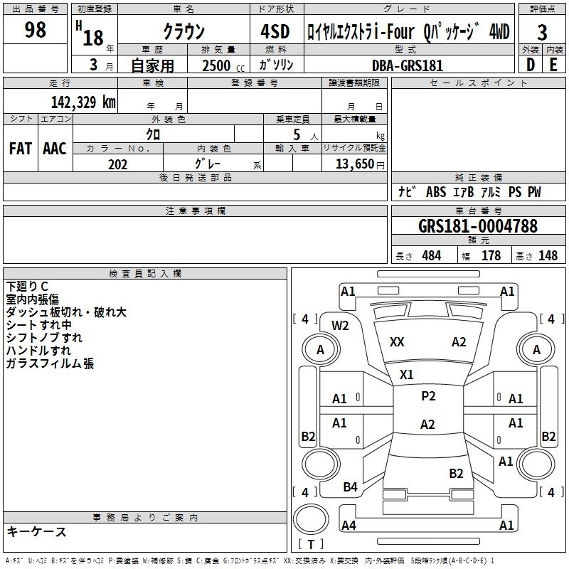 Год выпуска2006 Пробег 142 000 км КузовGRS181 Комплектация ROYAL EXTRA I-FOUR 4WD