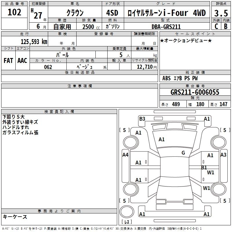 TOYOTA CROWN 2015 г., лот № 102