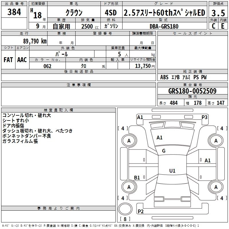 Год выпуска2006 Пробег 90 000 км КузовGRS180 Комплектация2.5 ATHLETE 60TH SPECIAL ED