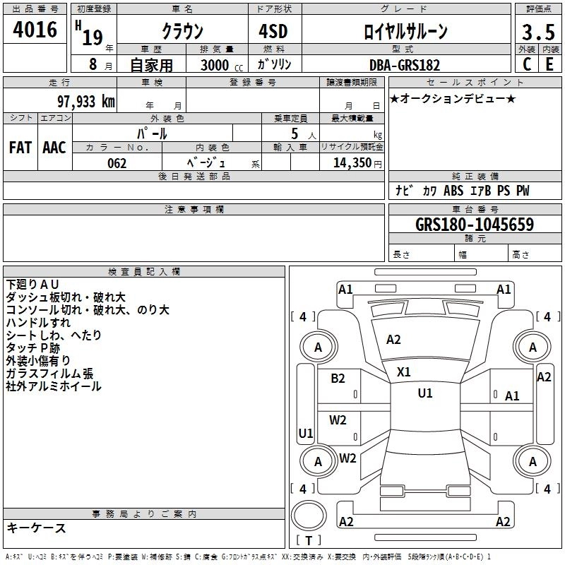 Статус выставлен на аукцион Лот 4016 Аукцион TAA Yokohama Дата аукциона 14.03.2026