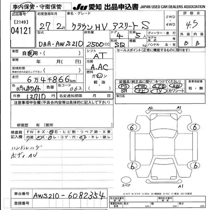 Статус выставлен на аукцион Лот 4121 Аукцион JU Aichi Дата аукциона 12.03.2026
